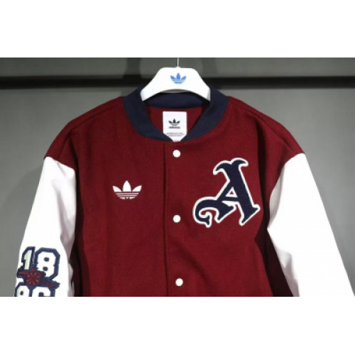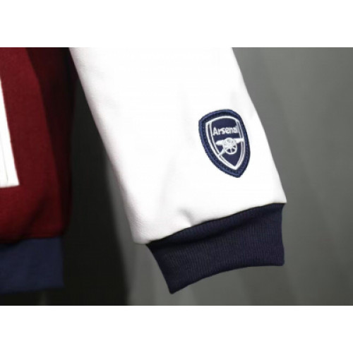 Бомбер выполнен в классическом стиле с фирменной символикой Арсенала и adidas. Основной бордовый цвет гармонично сочетается с белыми рукавами, что придаёт вещи стильный контраст. На груди расположен крупный буквеный логотип «A» и фирменный знак adidas Originals, на рукаве — вышивка «1886», напоминающая о годе основания клуба. Манжеты, воротник и низ выполнены в тёмно-синем цвете с эластичной отделкой для комфортной посадки. Модель отличается качественными материалами, удобной посадкой и современным дизайном, который подойдёт как для повседневной носки, так и для поддержки любимого клуба в сезоне 2025/26.