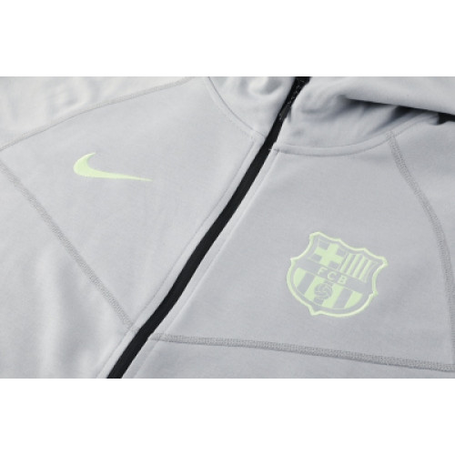 Серый спортивный костюм «Барселона» с капюшоном — это стильная и удобная экипировка, выполненная в цветах клуба, часто с использованием качественного полиэстера или трикотажа. Комплект включает толстовку/худи с регулируемым капюшоном и джоггеры, украшенные эмблемой «Барсы». Модель обеспечивает комфорт, имеет манжеты и карманы. Основные характеристики: Дизайн: Серый цвет с символикой ФК «Барселона». Верх: толстовка с капюшоном на молнии, широкие резинки на манжетах. Низ: Брюки-джоггеры с карманами (часто на молнии) и резинкой внизу. Назначение: Активный отдых, тренировки, повседневное ношение. Костюм подходит для создания современного спортивного образа