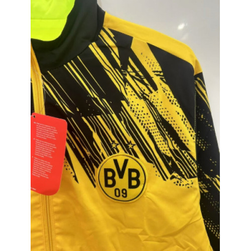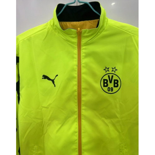 Удобная и стильная куртка для болельщиков «Боруссии», выполненная в двух вариантах дизайна. С одной стороны — классический жёлто-чёрный стиль с динамичным графичным узором по плечам и рукавам, с другой — яркий неон с контрастными чёрными элементами. Оба варианта украшены клубным гербом BVB 09 и логотипом Puma. Модель выполнена из лёгкого и прочного материала, защищающего от ветра и обеспечивающего комфорт в повседневной носке. Застёжка на молнию и боковые карманы делают куртку практичной и удобной. Двухсторонний дизайн позволяет менять стиль под настроение и ситуацию — от классики до яркого современного образа. Отличный выбор для фанатов, которые хотят подчеркнуть поддержку «Боруссии» в любой ситуации.