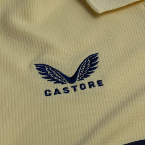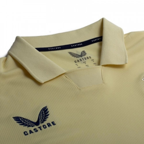 Новая гостевая форма «Эвертона» на сезон 2025-2026 выполнена в бледно-желтом цвете с темно-синими узорчатыми манжетами. Футболка дополнена воротником поло, что придает ей винтажный вид, и сходство с формой сезона 2010/11. "Совершенно новая, улучшенная футболка высокого качества, изготовленная из 100% полиэстера, оснащенная передовой технологией отвода влаги и пота, эффективно испаряет влагу с поверхности тела, обеспечивая длительный комфорт и сухость.(AAA+/1:1) Идеально подходящая для различных случаев, таких как тренировки и соревнования, она отлично впитывает пот и воздухопроницаема, обеспечивая исключительные ощущения от ношения