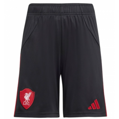 Гостевые шорты ФК Ливерпуль на сезон 2025/26. Черного цвета с красными логотипами.