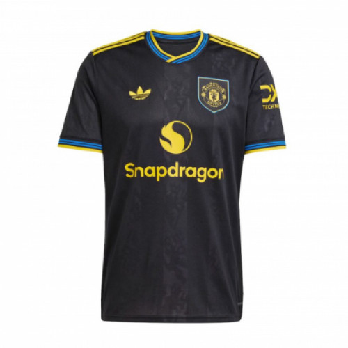 Детская резервная форма Manchester United нового сезона - стильный чёрный комплект с яркими жёлтыми деталями и голубыми акцентами на вороте и рукавах. Цвета смотрятся свежо и заметно: тёмная база делает образ строгим, а контрастные элементы сразу выделяют форму на поле. Отличный вариант, если хочется актуальный дизайн сезона и чтобы комплект выглядел не «как у всех». Подходит для тренировок, игр и повседневной носки, удобно сидит и не мешает двигаться. Отличный выбор для юного фаната Manchester United