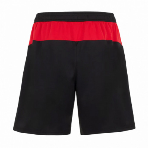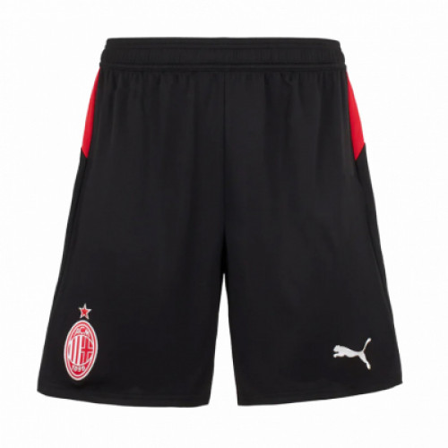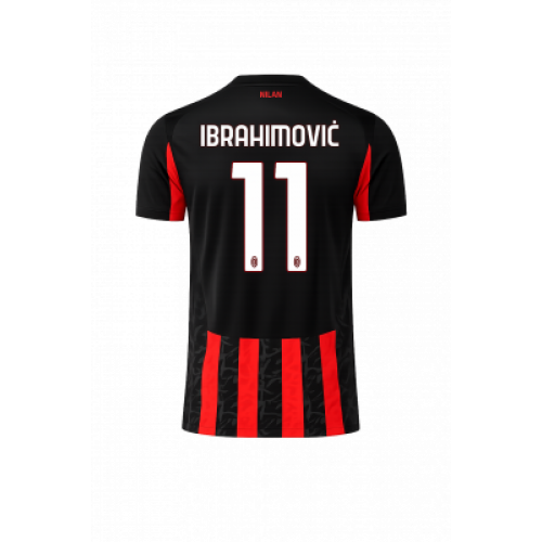 Домашняя форма «Милана» сезона 2025/26 с нанесением IBRAHIMOVIĆ 11: классические красно-чёрные вертикальные полосы с тонким графическим паттерном, логотип PUMA и эмблема ACM со звездой. На груди — Emirates Fly Better. В комплекте: футболка, шорты и гетры в чёрном цвете с красными акцентами — готовый сет для игры и фанатской коллекции.