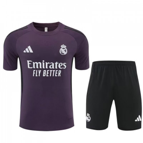 Тренировочный костюм Реал Мадрид сезона 2025/26 в фиолетовом исполнении — это один из самых ярких и технологичных комплектов в новой коллекции клуба. Данная модель предназначена для тренировок в теплое время года и подготовки к вечерним матчам. Основные характеристики Комплектация: Включает легкую тренировочную футболку и спортивные шорты. Цветовая гамма: Основной цвет верха — фиолетовый , дополненный белыми деталями. Шорты выполнены в черном цвете с белыми вставками. Технологии: Использование материала с технологией AEROREADY, которая эффективно впитывает влагу и обеспечивает охлаждение кожи во время интенсивных нагрузок