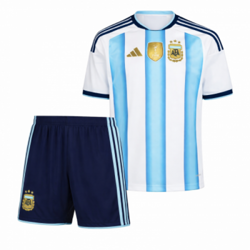 Детская форма сборной Аргентины на ЧМ-2026 — культовые бело-голубые полосы в обновлённом исполнении. Классический дизайн подчёркивает богатую историю и статус действующих чемпионов мира. Лёгкий дышащий материал обеспечивает комфорт и свободу движений, а контрастные детали и эмблема делают комплект узнаваемым с первого взгляда.