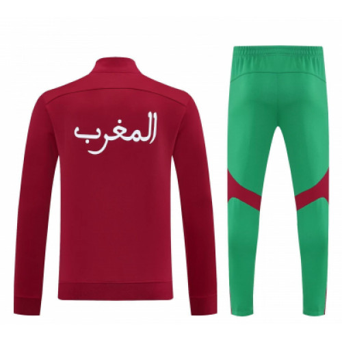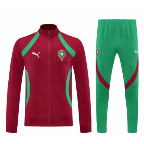 Спортивный костюм сборной Марокко с ярким контрастным дизайном — насыщенный красный верх и зелёные штаны создают выразительный футбольный образ. Олимпийка на молнии с высоким воротником, плавными вставками и эмблемой команды выглядит динамично и современно. Штаны с зауженным кроем и эластичным поясом обеспечивают комфорт. Отличный выбор для тренировок, прогулок и повседневного стиля.