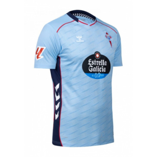 Домашняя форма «Сельты» сезона 2025/26 от Hummel сохраняет фирменную небесно-голубую идентичность клуба. Геометрический узор на ткани создаёт мягкий визуальный ритм, напоминая о волнах Атлантики — символе Галисии. Контрастные бордовые акценты на воротнике и боковых вставках добавляют энергии и современности, подчёркивая динамичный стиль команды. На груди — логотип Estrella Galicia 0,0, гармонично вписанный в общую композицию. Лёгкий, дышащий материал с технологией BeeCool обеспечивает комфорт и вентиляцию во время игры. Это свежий, узнаваемый и по-галисийски сдержанный дизайн — отражение духа Виго.